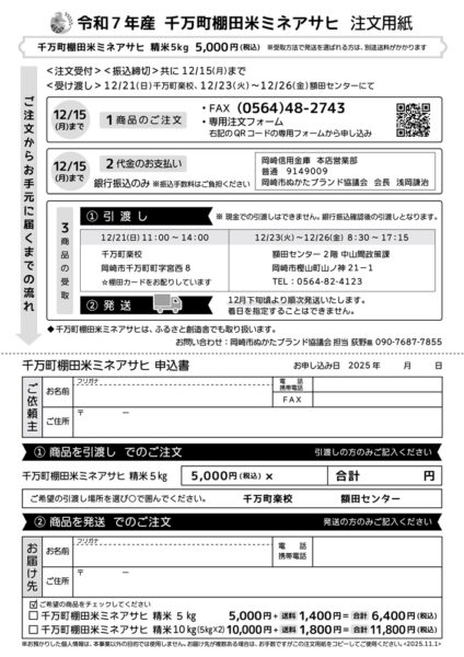 「令和7年産 千万町棚田米ミネアサヒ」申し込みフォームはこちら
